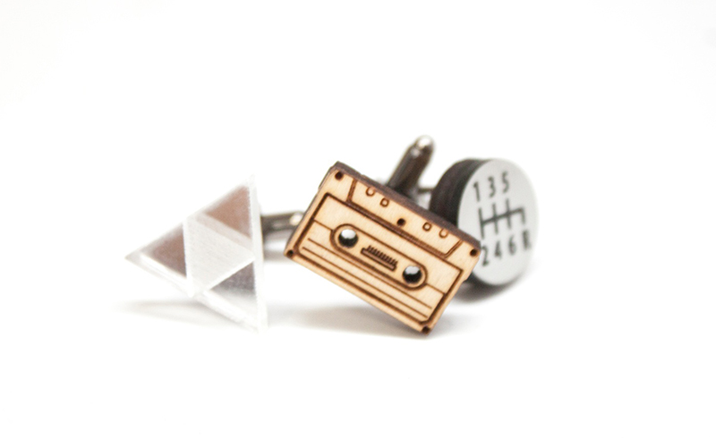 由於製作新品變得更容易,不用擔心失敗或耗時,且雷射切割圖案精細,因此可以嘗試更多不同以往的設(shè)計;例如下圖這個別具特色的錄音帶造型袖扣,能同時結(jié)合袖扣的基本形式與設(shè)計的巧思。以往平均要花一小時進行手工切割及雕刻才能生產(chǎn)一個袖扣,自從有了Muse雷射切割機,她能在一小時內(nèi)將多個袖扣一次切割完成,省下的時間則能讓她再度研發(fā)下一個飾品設(shè)計。