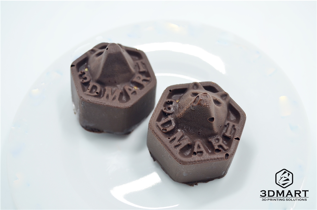 【3D列印快訊】中秋一同賞月 3D列印自己做月餅 你想的到用3D列印來做月餅模型嗎? 你可以不在侷限於市面上的月餅,做出你專屬的月餅,來看看我們3DMART 專屬的月餅吧~~~ 中秋節即將到來,每到這一天大家就會聚在一起,一同烤肉吃柚子和大吃月餅。 每年中秋節月餅都不斷推陳出新,有各種口味任君選擇,但若能自己做月餅就可以用更特別的口味,造型也能隨 自己喜歡的來製作。 於是今年3DMART決定自己做月餅來吃,口味當然要做特別的,猜猜我們是做什麼口味的呢? 3D列印月餅製作流程 首先將我們設計好的3DMART熊造型的3d檔案用Ultimaker 3d列印機列印完成,月餅中間蹦出來的熊頭, 就是我們LOGO 裡的熊的造型,旁邊再加上文字,讓月餅更有整體性。 3D列印完成的月餅模型 將月餅模型放入酒精拋光機蒸一會兒,讓表面更加平滑,帶模型全乾後,就可以製作矽膠模囉! 左邊為為拋光過的3D列印模型,右邊是用酒精拋光過的3D列印模型 矽膠模製作方式請參考之前蜘蛛人頭蠟燭文章,這裡就不一一解釋了,我們這次是用小紙杯協助製作。(小提醒: 這 裡使用的矽膠必須是食用級的唷!) 接下來就是主廚料理的時間囉! 大家可以選擇放自己喜歡的餡料唷,我們愛吃巧克力,所以就都選用巧克力,外層是 黑巧克力,內餡是薄荷巧克力冰淇淋,非常新型的月餅口味,好像比較像蛋糕?! 看起來很好吃吧! 實際上吃起來也是十分美味唷~~~ 非常幸福的享用中,拍完照片立刻被大家吃光光,是有多餓?? 內餡的巧克力薄荷冰淇淋 若是你手邊剛好有一臺3D列印機的你,趕快自己也來DIY 一個月餅(甜點?!)來吃吧!