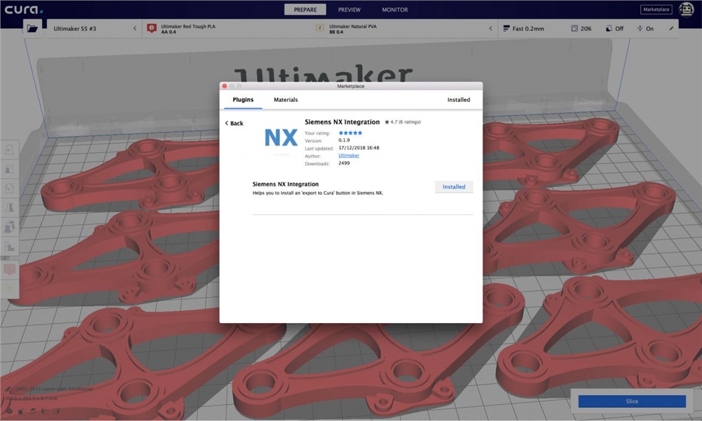 3.外掛評分機制:登錄Ultimaker帳戶後,在「Marketplace」中將提供外掛元件的回饋。透過評估體驗,用戶們可以彼此互助找到最適合應用程序的外掛元件,並為該貢獻者提供有價值的回饋。