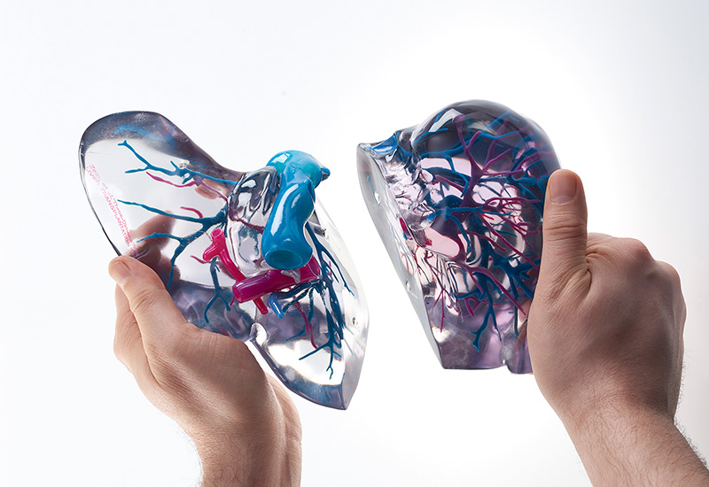 (VeroClear樹脂能精準表現玻璃、壓克力的透光效果,還可與其他色彩搭配應用,廣泛用於人體模型、醫療術前規劃…等教學應用。)