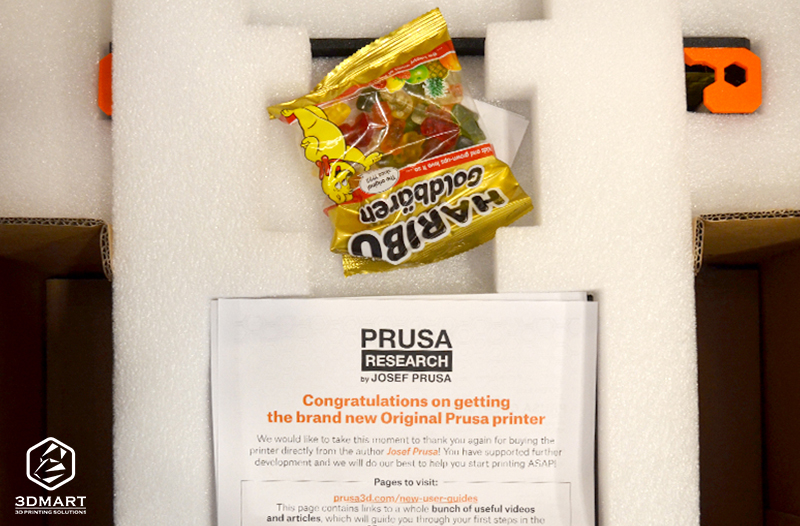 首先拆開箱子映入眼簾的是──軟糖一包?沒錯!作為「自造者Maker」或設計工作室的好幫手,提供幽默及熱量是必須的,原廠提供開箱軟糖、一邊咀嚼軟糖就能一邊將泡棉拿起來。