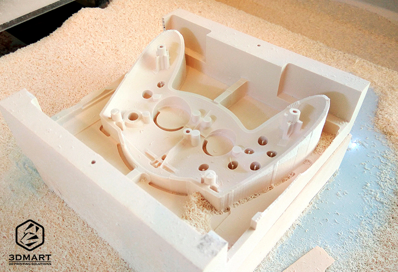 我們這次使用的是代木材料,屬於木屑與樹脂混合的塑料塊;透過CNC加工完成後呈現霧面質感,但摸起來十分平滑不粗糙、不落粉,非常接近產品原型或塑膠射出的效果。