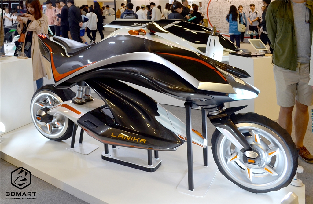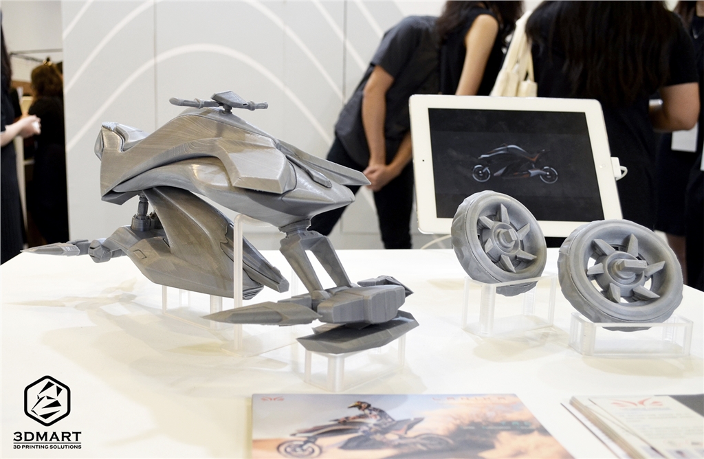 而最令人驚豔的就是超未來(lái)的跑車(chē)、水上摩托車(chē)模型…等,圖中作品的3D列印小模型在一旁可說(shuō)是小巫見(jiàn)大巫,可以看到應(yīng)該是用單噴頭3D列印機(jī)製作,紋路比較明顯的部分如果使用雙噴頭系統(tǒng)的PVA水溶性支撐,表面會(huì)更漂亮。(延伸閱讀:臺(tái)灣新創(chuàng)設(shè)計(jì)力,前進(jìn)歐洲市場(chǎng)!)