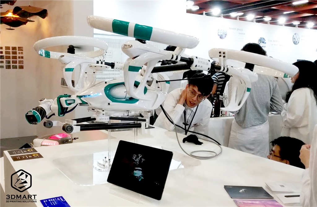 工業(yè)設(shè)計(jì)類(lèi)有許多突破性的成果,這臺(tái)超越觀賞模型、真實(shí)可動(dòng)的四軸飛行器,除了前方攝影鏡頭可像機(jī)械手臂一樣360度無(wú)限旋轉(zhuǎn)外,因?yàn)閯?dòng)能太強(qiáng),甚至差點(diǎn)「掙脫」固定架在展場(chǎng)內(nèi)直接起飛。
