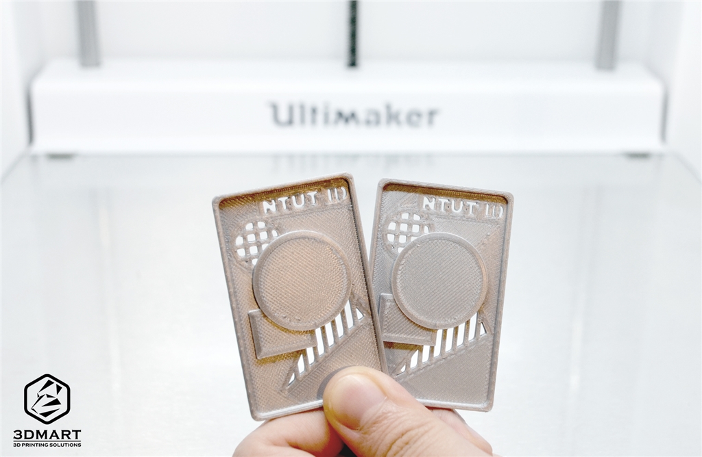 三帝瑪現(xiàn)場(chǎng)提供最新款的Ultimaker S5 3D列印機(jī)為學(xué)生免費(fèi)列印贈(zèng)品,透過(guò)現(xiàn)場(chǎng)3D列印機(jī)立即製作並贈(zèng)送,許多參觀者都看的不亦樂(lè)乎,常常把櫃檯的小通道擠滿。由北科大設(shè)計(jì)的3D列印酷卡小而精緻,僅五公分的範(fàn)圍內(nèi)就有鏤空、浮凸、刻字等充滿層次的多重結(jié)構(gòu),很高興Ultimaker S5能夠滿足這些精細(xì)的需求。