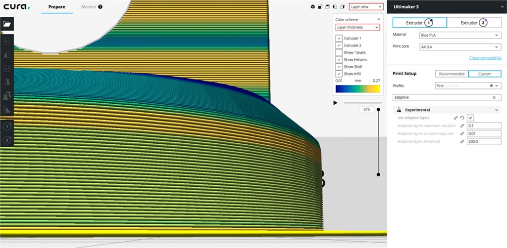 【3D列印快訊】Ultimaker Cura 3.2新版本發布! 測試階段已結束,我們非常有信心地要向您展示Ultimaker Cura 3.2的正式版。 在這個版本的Ultimaker Cura中,我們優化了用戶界面,以減少GPU對背面剔除的負擔,增加了新的UI元素, 允許在每個模型設置中創建網格物體,甚至只需加載即可進一步縮短啟動時間必要的資料。 繼續閱讀以了解更多新功能。 增強切片功能 自適應層 - 截至目前,切片被限制在一個固定的圖層大小。自適應圖層提供一種替代方法,其中圖層的列印厚度 與模型表面的角度配合。 切片算法將較窄的層厚分配給傾斜表面,並將較寬的層厚分配給垂直表面。達成高質量表面的處理結果,但需要 稍微增加列印的持續時間。該設定可以在實驗(experimental)的分類下找到。 可在「圖層視圖」模式中找到「圖層厚度」的顏色方案讓您能夠預覽列印的圖層厚度。 從黃色(最厚)到藍色(最窄)的顏色表示每層的相對厚度。 樹狀支撐 - 樹狀支撐是一種實驗的支撐方法,使用「分支」「生長」並向需要支撐的區域長出,模型上的接觸點更少 ,表面光滑度更好。使他成為有機品列印的理想選擇。也可以與其他支撐方法一起使用樹狀支撐。 樹狀支撐可用於有機體形成的物件。 UI元素 多層列印平臺。通過在軟體首選項中啟動多重列印平臺,可以在工作區中增加一個新的面板,使您可以在單個選單中 使用共享設定管理單獨的列印平臺。每個單獨的列印平臺會被加到Cura Connect的列印陣列中。 這解除了多次清除列印平臺的需要,以便更好地縮放操作,並更大限度地延長正常運行時間。 在單個選單中有多個列印平臺的切片檔案。 更快啟動 - 現在在增加列印機時就會載入列印機定義,不是在啟動時載入所有可用的列印機,與之前版本相比,減 少啟動的時間。 網格在每個模型設置 - 其他選項已加到每個模型的設定,提供簡化的方法來分配模型列印為網格。當處於自定義模 式時,可以將不同的切片設定分配到列印的不同部分,例如,一個網格作為自定義的支撐時,自動生成的支撐材料 不會放置在你不喜歡的地方。 下拉列表讓您可以指定網格的功能: 正常模型 (Normal model )- 將網格列印成正常模型。 列印成支撐(Print as support ) – 將網格列印為支撐材料。 不與其他模型重疊支撐(Don't overlap support with other models ) - 在網格重疊的區域不會生成支撐材料。 修改與其他模型重疊的設定(Modify settings for overlap with other models) - 將網格重疊的部分中列印網格以代替模型。 修改其他模型的填充設定(Modify settings for infill of other models) - 網格將在網格重疊的部分列印為填充。 修改其他模型的填充設定 這個登山扣是一個長方體網格切片,選擇「修改其他模型的填充設定(Modify settings for infill of other models)」。 網格跟分配給更密集的填充設定的其餘模型相比,能給重疊部分更大的耐用性。 背面剔除 - 通過只渲染模型的可見曲面,而不是渲染整個模型,讓層視圖在性能上更加提升。明顯提升了幀速率, 並降低了GPU的負荷。 更新側欄到QtQuick 2.0 - 應用程式欄位已更新成提升速度,更合適的寬度和風格,並為用戶提供下拉式選單,以配 合啟用的Ultimaker Cura主題,而不是操作系統的主題。 隱藏側邊欄 - 現在可以通過選擇View> Expand / Collapse Sidebar,或使用熱鍵CMD + E(Mac)或CTRL + E (PC和Linux)來隱藏或顯示側邊欄。這是為了擁有更寬廣的列印平臺,讓在小屏幕上顯示的列印平臺擁有更大的可 見性。 隱藏邊欄以獲得更好的視圖 禁用「發送切片訊息」- 在第一次啟動時增加禁用「發送切片訊息」的快捷方式,使需要隱私的用戶更容易保持切 片訊息的私密性。點擊禁用按鈕會將用戶帶到首選項(preferences),他們可以自行編輯首選項。 簽名的二進製檔案(Windows)- 對於安全意識的用戶,Windows安裝程序和Windows二進製檔案已經過數位簽 名,以防止“未知應用程序”警告和病毒掃描程序誤報。 每臺擠出機開始/結束gcode檔案-現在可以查看和編輯來自兩個擠出機開始與結束時變量的gcode片段,進而在不同 切片環境中的配置檔案裡建立一致性。 視圖查看優化- 3.1版中的快速攝影機控制鍵已經過修改,可以創造更精確的等距視圖,前視圖,頂視圖,左視圖 和右視圖。 快速相機控制 OctoPrint外掛加到外掛導覽器 - 這個外掛已經移動到外掛導覽器。這個外掛可以使用OctoPrint通過Ultimaker Cura 介面(版本 3.2 或更高階)來管理列印機。 修復錯誤 在我們社區的幫助下,我們修復了不兼容的鏡像工具和中心模型設定,修復了配置檔案位於遠端驅動器時的錯誤, 更新了Arduino驅動程序以防止更新為Ultimaker原始版本,並優化了自動排列所有模型選項,用於列印平臺上可靠定 位的多個小型模型。 現在就下載使用! 我們要感謝所有的測試者幫助我們測試這個版本,特別感謝fieldOfView的貢獻。 今天開始下載Ultimaker Cura 3.2探索它的好處! 原文連結:https://ultimaker.com/en/blog/52484-discover-ultimaker-cura-32