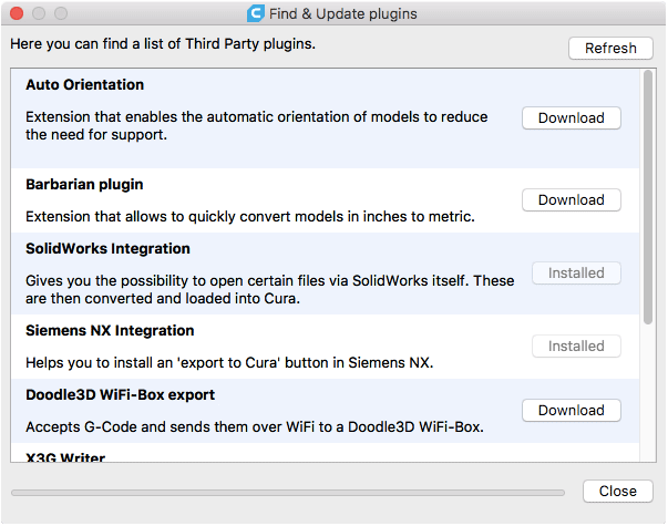 【3D列印快訊】Ultimaker Cura與 3D軟體的整合 Ultimaker Cura的好處之一是用戶可以擴展軟體的核心功能,以簡化3D列印的工作流程。 用戶可以嘗試Ultimaker Cura的修改,以整合不同的軟體,讀取自訂檔案格式,添加自訂的選單項目等等。 所有用戶都可以使用外掛進行開發,可以根據需要在軟體中增加功能。 全球產品設計師和工程師的工具 目前可使用的一個外掛是SolidWorks整合。 SolidWorks整合外掛是一個檔案擴展讀取器的例子 - 一個外掛, 讓你可以從不同的軟體中讀取檔案格式。 SolidWorks是一個著名的工業標準設計軟體,在全球有超過3,246,750名產品設計師和工程師使用,代表工業, 醫療,科學,消費者,教育,科技和運輸行業等240,010個組織。 因此,擴充Ultimaker Cura整合SolidWorks的功能對使用3D列印的組織具有廣泛的影響。 縮小差距 SolidWorks中設計的物件具有專用的檔案格式。設計出來的由形式組合是(.asm)而零件是由(.sldprt)組成。 在過去為了準備用於3D列印的SolidWorks設計,必須先以專用的.stl格式輸出,才可以在Ultimaker Cura中打開, 定位在列印平臺上,切片成層,再存為gcode輸出進行3D列印。 Ultimaker Cura的SolidWorks整合外掛讓你不需要再次轉換檔案。 安裝後,SolidWorks整合外掛將執行兩個主要的功能:用戶可以直接在Ultimaker Cura中打開.sldprt或.asm檔案, 就像打開其他檔案一樣。 用戶可以選擇導入檔案的品質,它將在SolidWorks中以相同的比例和方向載入到列印平臺。 在Ultimaker Cura中打開SolidWorks檔案 用戶可以在SolidWorks的界面增加一個「Export to Ultimaker Cura(匯出到Ultimaker Cura)」的按鈕,以便將設 計從SolidWorks快速丟進Ultimaker Cura中。 更簡單的設計流程 SolidWorks整合外掛的另一個優點是在修改設計時能更快速的匯出。 假設在初始原型後,設計需要改變 –公差的部分太緊,或因合乎法規的原因需要修改。使用SolidWorks整合外掛, 只需要修改設計後,直接在SolidWorks界面中點擊「Export to Ultimaker Cura(匯出到Ultimaker Cura)」按鈕, 外掛將開啟Ultimaker Cura,並進行最新的設計改變。 此影片概述了整個工作流程: 所有外掛都在同一個地方 可以在外掛瀏覽器中找到Ultimaker Cura中所有可使用的外掛,通過導覽器到外掛>瀏覽外掛。 了解如何開發自己的訂制外掛以滿足您的業務上的需求,請瀏覽此頁面的概述。 原文來源:https://ultimaker.com/en/blog/52472-ultimaker-cura-3d-printing-software-solidworks-integration-for-a-better-workflow
