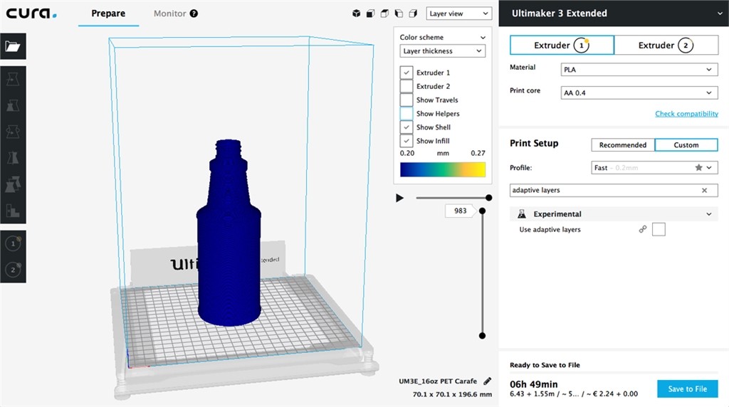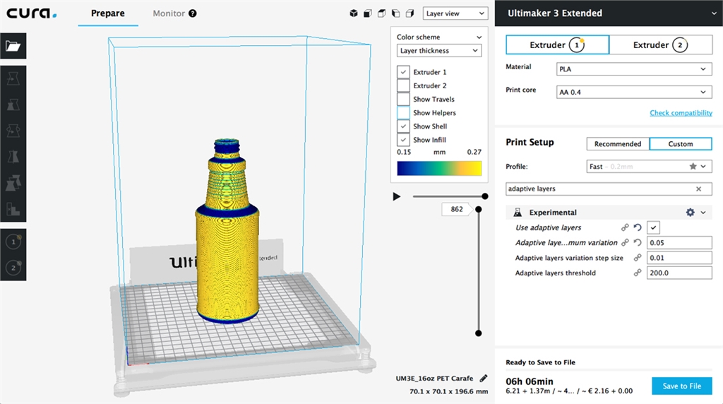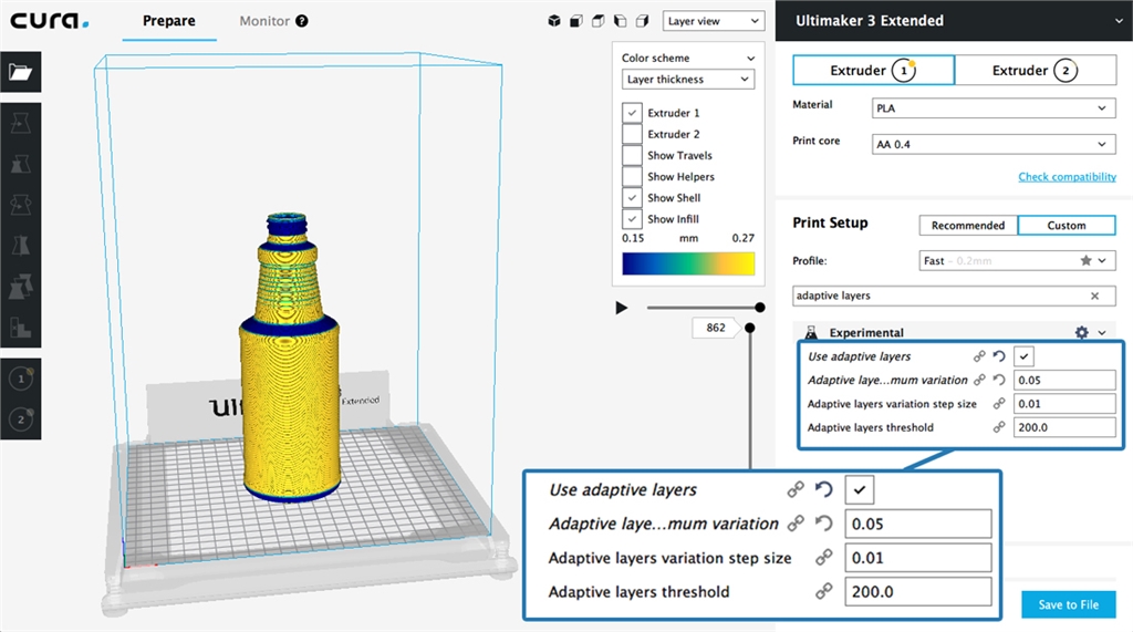 【3D列印軟體】用Ultimaker Cura的自適應(yīng)層功能快速列印 正如多數(shù)人知道的那樣,Ultimaker 3D列印機(jī)使用融合沉積建模(或FDM)來(lái)製造物理物件。 這個(gè)過(guò)程是通過(guò)將一個(gè)數(shù)位模型切片成一堆水平層,借助Ultimaker Cura等切片軟體。 讓圖層依次列印在一起,形成一個(gè)物理物件。 質(zhì)量與速度 多數(shù)切片軟體將每個(gè)圖層間分配一個(gè)不變的間距(稱為圖層高度)。 非常精細(xì)的圖層高度會(huì)產(chǎn)生高解析度模型,但每個(gè)額外圖層都會(huì)增加列印過(guò)程的時(shí)間。較厚的圖層高度會(huì)列印得更 快 - 因?yàn)榱杏〉膱D層較少 - 但完成後的模型細(xì)節(jié)程度會(huì)降低。這些情況讓用戶處?kù)侗仨氝x擇的位置,以優(yōu)化列印的 時(shí)間或列印品質(zhì)。 如果你能擁有兩全其美的世界 – 讓你的列印圖層高度能自己適應(yīng)物體的形狀呢? 自適應(yīng)層,自Ultimaker Cura 3.2以來(lái)可用的新切片特色使這些成為可能。 在產(chǎn)品開(kāi)發(fā)中應(yīng)用自適應(yīng)層 這在實(shí)踐中意味著什麼? Poly-Tainer Inc.是一家塑膠瓶製造商和裝飾商,生產(chǎn)使用於健康和美容市 場(chǎng)產(chǎn)品的容器。為加快3D CAD設(shè)計(jì)實(shí)施流程,他們投資兩臺(tái)用於內(nèi)部原型設(shè)計(jì)的Ultimaker 3 Extended列印機(jī)。 藉由3D列印技術(shù),Poly-Tainer能夠與他們的客戶(通常是Target和Walmart等主要零售商)共享準(zhǔn)確的概念模型, 並在投入高達(dá)100,000美元大量生產(chǎn)模具之前消除設(shè)計(jì)中的不確定性。 在Ultimaker Cura中使用「快速」切片檔案的瓶子原型。 層厚持續(xù)維持在0.2mm(200micron)。 使用自適應(yīng)層切片的瓶子原型。 列印時(shí)間減少了10%,並且對(duì)需要它的區(qū)域給予更多細(xì)節(jié)。 最終產(chǎn)品在貨架上的外觀是販?zhǔn)圻^(guò)程的重要考慮因素。使用自適應(yīng)圖層,Poly-Tainer可以在比具有不變圖層高度的 模型在更少的時(shí)間內(nèi)列印出具改進(jìn)外觀和品質(zhì)的細(xì)節(jié)概念模型。 模型的角度部分每層都具有更精細(xì)的步驟,重要的設(shè)計(jì)元素(例如瓶子頸部的線跡)具更好的細(xì)節(jié)。 使用Ultimaker Cura圖層視圖中包含的層厚顏色方案,可以顯示層厚的變化。 在這個(gè)例子中,較厚層是黃色的, 較精細(xì)層是藍(lán)色的。 Ultimaker 3的雙重?cái)D出功能可以使用可溶解的PVA支撐材料,有助於實(shí)現(xiàn)設(shè)計(jì)特徵,例如「底部提高」,這是製造 瓶子中的重要設(shè)計(jì)元素。 與恆定層高度相比,使用自適應(yīng)層和可溶解PVA支撐能更快速的創(chuàng)造此概念模型,而且具 有定義明確的裝飾斜面,增加的細(xì)節(jié)助也幫助裝飾瓶子過(guò)程時(shí)提供的精準(zhǔn)的多色網(wǎng)狀列印。 底部提高是保健和美容產(chǎn)品容器的理想特徵。 此功能的水平橫截面顯示藍(lán)色的支撐結(jié)構(gòu)。 列印完成後, 支撐材料可以更容易的溶解在自來(lái)水中。 精準(zhǔn)的3D列印概念模型使Poly-Tainer能夠在生產(chǎn)工具創(chuàng)造第一個(gè)產(chǎn)品之前訂購(gòu)訂製的裝飾工具。 這讓新設(shè)計(jì)推向市 場(chǎng)的時(shí)間節(jié)省了約4-6星期的時(shí)間。 自適應(yīng)層如何優(yōu)化速度和細(xì)節(jié) Ultimaker Cura的自適應(yīng)圖層功能可分析模型外壁的傾斜角度。 切片引擎會(huì)優(yōu)化每個(gè)部分的層厚。 曲線以更精細(xì) 的圖層分析率列印,而垂直平坦區(qū)域則列印更厚的圖層,縮短列印時(shí)間。 計(jì)算方式是自動(dòng)的,用戶可以指定的三個(gè) 參數(shù):最大變化量,變化步長(zhǎng)和層閾值。 預(yù)設(shè)參數(shù)通常就足以提供良好的結(jié)果,但可以進(jìn)行測(cè)試以進(jìn)一步優(yōu)化用戶 特定模型的列印時(shí)間,同時(shí)仍保留精細(xì)細(xì)節(jié)。 免費(fèi)可使用的切片軟體 Ultimaker Cura完全免費(fèi)提供給用戶。 您可以通過(guò)將此樣本.STL檔案載入到Ultimaker Cura 3.2或更高版本來(lái)嘗試 此功能。通過(guò)切換到自定義模式並在搜尋欄位中搜索「自適應(yīng)圖層」,從Ultimaker Cura的界面中訪問(wèn)自適應(yīng)圖層 的設(shè)置。我們一直喜歡聽(tīng)Ultimaker如何幫助人們簡(jiǎn)化業(yè)務(wù)流程。 你認(rèn)為哪些功能對(duì)你的工作流程最重要? 歡迎在我們的3D列印專家社群中分享您的想法。 特別感謝Poly-Tainer Inc.的Frank Cowles。 原文連結(jié):https://ultimaker.com/en/blog/52520-print-detailed-objects-faster-using-adaptive-layers-in-ultimaker-cura