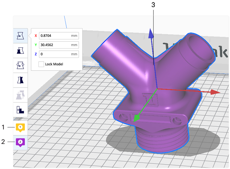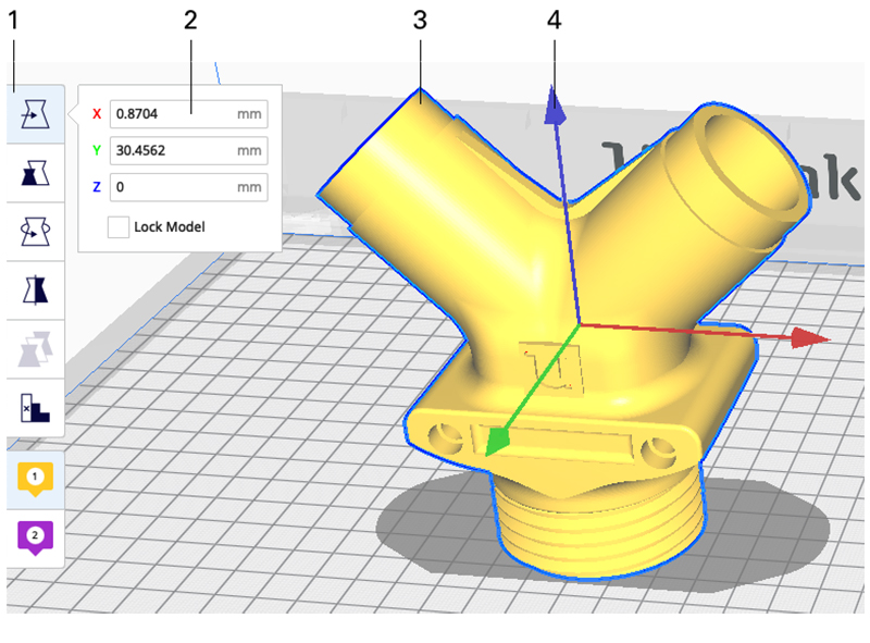 Ultimaker Cura的調整功能,使您能夠有效的在工作介面上縮放、旋轉3D模型。
