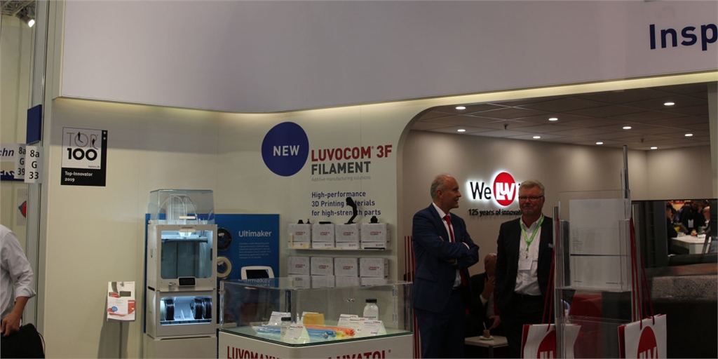 「Lehvoss Group公司」在會場上使用Ultimaker S5 Pro Bundle列印新款LUVOCOM®3F線材,適用於高性能工業應用,共有四種不同材料,主要材質為PAHT®和PET;其中兩款採用碳纖維增強,具有高度可加工性,不易變形、耐用穩定。
