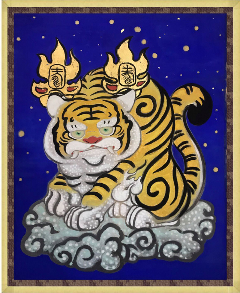 2020年開(kāi)始,全球受到新冠肺炎(COVID-19,武漢肺炎)的衝擊,各界陷入低潮,臺(tái)灣本土藝術(shù)家.方志偉,以虎爺?shù)男蜗?,使用膠彩、絹本等媒介創(chuàng)作了藝術(shù)作品「金花虎爺The Keeper」,希望能帶給人們溫暖的正能量、安撫人心並帶來(lái)福氣。