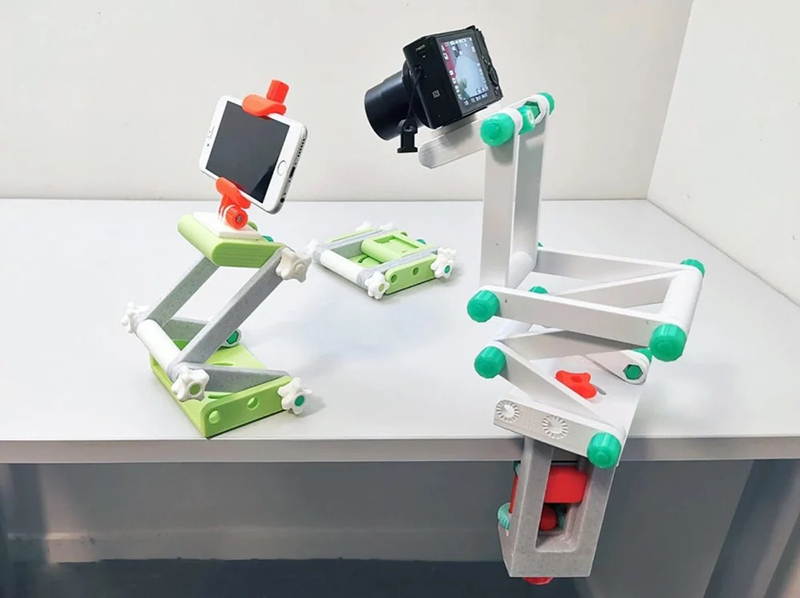 拍照時候手抖?攝影需要固定角度?腳架不必花大錢!透過3D列印的折疊式角架,可以固定你的手機、電話、平板電腦、相機…等3C設備。