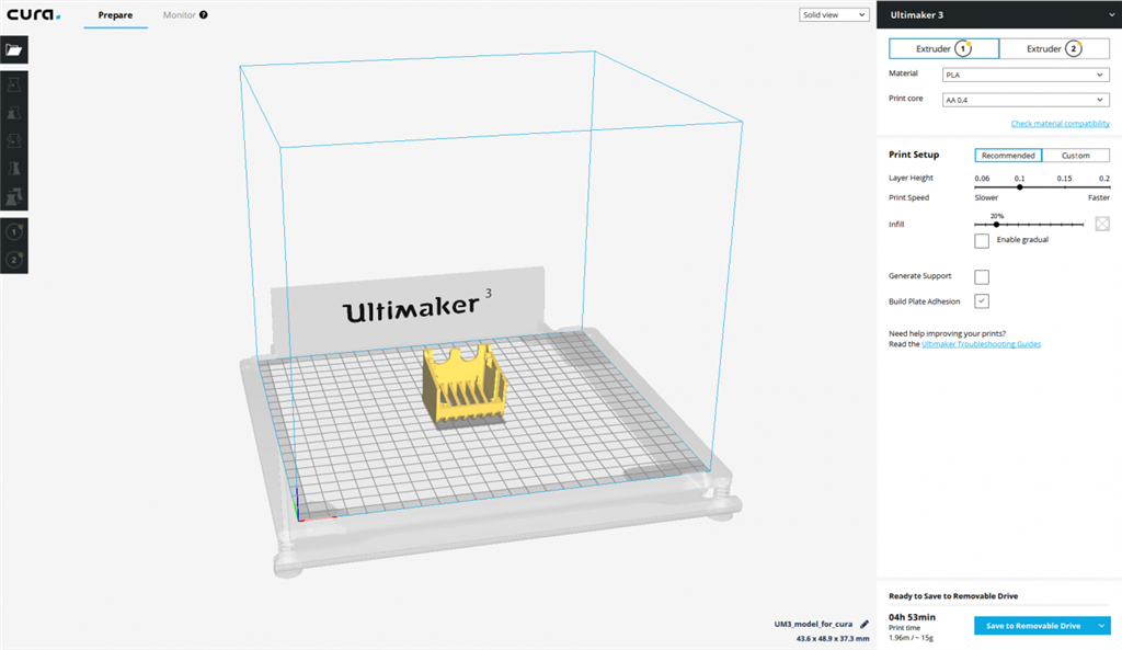 【3D列印軟體】歡迎使用Ultimaker Cura 3.0 Ultimaker Cura 3.0為使用者提供了最簡單,最便捷的體驗,無論是新手還是專業人士。使用新的界面,準備好你的3D 列印模型將比以往更加簡單。 隨著第三方外掛的開啟了所有新的可能性,我們決定從2.7移到3.0來標記這個新時代的完美方式。在全球範圍內為100多萬名 使用者提供服務,我們的軟體已經被設計成為專業人士採用3D列印工作流程的解決方案。 Ultimaker Cura 3.0提供: 全新UI介面。使用推薦的設定,使用直觀的滑軌準備列印,或使用自行設定單獨調整超過200個獨特的切片參數,進行快速簡便的列印設定。 降低列印時間和材料消耗。推薦模式具有新的預設設定,目標在於節省列印時間,使用的材料和材料成本。 專業外掛集合。將Ultimaker Cura無縫集成到您的工作流程中。使用行業標準CAD軟體包(像是SolidWorks和Siemens NX), 或開發自己的定制外掛來滿足您的特定需求。 以下顯示Ultimaker Cura 3.0中的一些功能與改進和修復錯誤: 改進UI Ultimaker Cura 3.0具完全更新的UI和配色方案。 啟動速度更快。與之前的版本相比,啟動速度已經減少了一半。 重新設計的啟動螢幕。啟動畫面已經重新設計,以回應新的界面。 滑軌。推薦模式現在使用滑軌來改變切片參數: •層厚和列印速度。輕鬆控制列印品質與列印速度成正比。 •填充。填充密度現在可以輕鬆使用滑軌增加到10%。 使用直觀的滑軌輕鬆控制列印的功能。 光柵化板。現在列印平臺能夠顯示10mm和1mm的刻度,以獲得更精確的模型定位。 列印平臺現在顯示為10mm和1mm的刻度,用在更精確的模型定位上 列印機按鈕。列印機按鈕已從標籤更改為按鈕,按鈕顏色已更改,以符合新的配色方案。 圖層視圖位置。圖層視圖下拉框已從左下角移動到右上角。 列印時間位置。列印時間位置從3D導覽器的右下角移到通過網路列印/儲存到檔案的按鈕左側。 標籤寬度。標籤功能的寬度將根據字體空間(支持多種語言)而改變。 第三方外掛和CAD集合 第三方外掛的功能。專業人士現在可以用自己開發的外掛取得更多Ultimaker Cura 的功能以簡化其工作流程。 目前可用SolidWorks和Siemens NX的兼容外掛,可以在外掛瀏覽器中找到。可以單擊安裝外掛,他將會在使用時自動更新。 SolidWorks集合。與SolidWorks 2016及以上版本兼容,此外掛可達成兩個軟體之間的無縫集合。 在SolidWorks中準備您的設計。 按「匯出到Ultimaker Cura」的按鈕。 將Ultimaker Cura打開,將您的設計匯入,準備切片和列印。 Siemens NX集合。在Siemens NX中創造的設計可以點擊一個按鈕送進Ultimaker Cura。如果在Siemens NX中修 改了設計,可以在Ultimaker Cura中再次單擊按鈕進行更新。此外掛與Siemens NX 10和11兼容。 新的切片功能 PVA的逐漸支撐。列印時間和材料消耗量通過在支撐體中列印較少的PVA填充並在接近頂部時減少。這同時減少了 PVA溶解的時間。在(額外)精細和正常的品質設定中,PVA填充層會列印雙重厚度,減少更多的列印時間。 填充在邊緣會變得更加密集,需要較少的支撐材料。 左側的列印是使用Cura 2.6進行切片。右邊列印是使用Ultimaker Cura 3.0進行切片。請注意右邊列印的是不太密集 的支撐 - 支撐向上與邊緣時會逐漸增加密度。 Z縫選擇。讓使用者控制要在哪裡放置接縫 - 將其隱藏在凸角或容易移除的位置。這不會使角落尖角影響接縫位置。 交叉填充。與其他填充類型相比,分形圖案填充需要些許的內縮。 這對於彈性材料是有用的,因為它在擠出時會導致少數材料伸長。由此提供的內部結構使彈性模型具有更大的阻力, 保持所有方向有“軟”的特性。 在Ultimaker Cura的交叉填充 使用TPU 95A的列印範例 四分之一立方體填充。類似於四面體(八位字節)填充,但是一半的線被移動到週期的一半。這種模式犧牲了八角形 填充物的一些剛性以獲得更大的韌性。 去除表面寬度。從模型中去除薄的表面,以防止列印噴頭彎曲,反過來又可以防止振動。缺少振動也會提高輕微突出 部分的列印品質。 表面擴張距離。切割陡峭突出的表面使列印不那麼堅固。 透過擴張牆壁厚度的外觀,功能將得到更好的支撐。此外,像填充物頂部像是塔的功能會更強。 增加表面壁數。此功能現在為預設啟用。在填充物頂部直接列印額外的表面可能會導致縫隙,捲曲。 首先通過表面周圍列印牆壁來減少,並且提高列印的速度。 表面最小擠出。阻止Ultimaker Cura 3.0填補可能已經填充的小間隙,從而減少細線,以及更好的頂 部細節和更快速的列印。 PVA回縮。在列印噴嘴更換期間PVA的縮回長度增加。結合減小的回縮距離和稍微高的最大計數, 這確保減少的串聯和更可靠的結果。退回的最小行駛距離減小,最大計數略微增加。顯著減少了列 印的時間。 修復Bug 在我們社群的幫助下,我們已經解決了以下問題: •連接到列印機時,訂製的材料配置檔案將不再發送到Ultimaker Cura •同步z-hop與更改圖層 •MacOS 上的內存洩漏 •檔案打開時列印機名稱未加載 •預設情況下,在非Ultimaker 3機器上選擇Doodle3D Wifi框 有關功能和新開發的全面細分,請查看Github上的Ultimaker Cura 3.0。 新的Ultimaker Cura?我們下方的快速入門指南影片將向您展示如何設置3D列印模型。 成為第一個看到Ultimaker Cura 3.0的優勢,從今天開始下載! https://ultimaker.com/en/blog/51439-welcome-to-ultimaker-cura-30