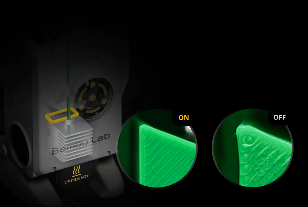 A1 在3D列印中革新了流量控制。它採用高分辨率、高頻率的渦流傳感器測量噴嘴內的壓力。我們的算法根據讀數主動調整流量,實現精準擠壓。