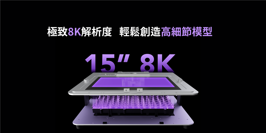領先業界43微米高解析度 & 8K解析度,為其他大型3D列印機的2倍;內建LED光源可均勻照射至每個角落,讓您的大模型輕鬆呈現超細膩的列印品質。