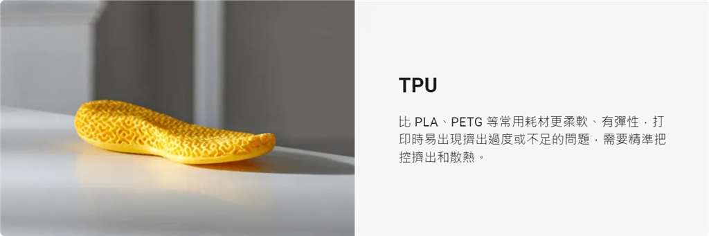 適用於 TPU 等柔性材料,成品易拆除。 適用於 PLA、PETG 等常規材料,粘附效果佳。