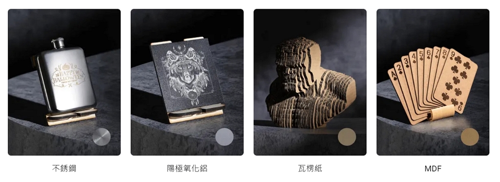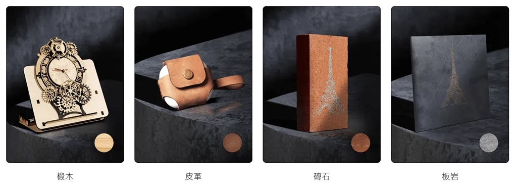 CNC性能提升同樣帶來更豐富的材料選擇。 200W CNC模組可以輕鬆完成硬木(櫸木、胡桃木)和玉石等硬質材料的精密加工。