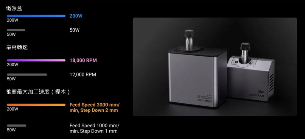 Artisan配備200W CNC模組,進一步提升 CNC 加工性能,同時保留了受用戶好評的 ER11夾頭、特製夾具和防塵設計,帶來新的桌面級CNC體驗。