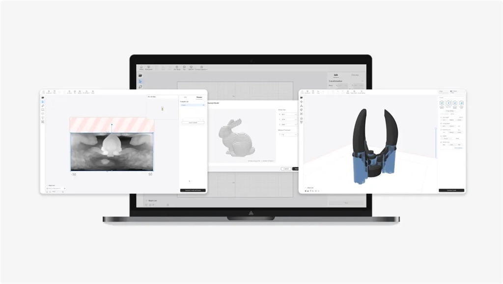 官方配套軟體Snapmaker Luban提供簡單好使用的3D列印、雷射光加工和 CNC加工設置操作流程。三種加工方式,一款軟體就能搞定!新手老手都能輕易上手!