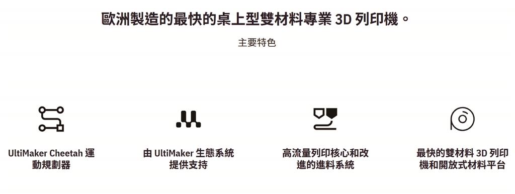 這是透過創新的 UltiMaker Cheetah 運動規劃器以及新的高流量芯和改進的進料系統來實現的。