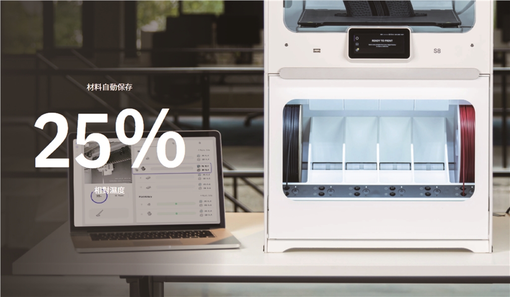 每個線軸的相對濕度都保持在 25% 以下,從而可以輕鬆實現幾乎任何聚合物和複合材料組合的更多 3D 列印應用。