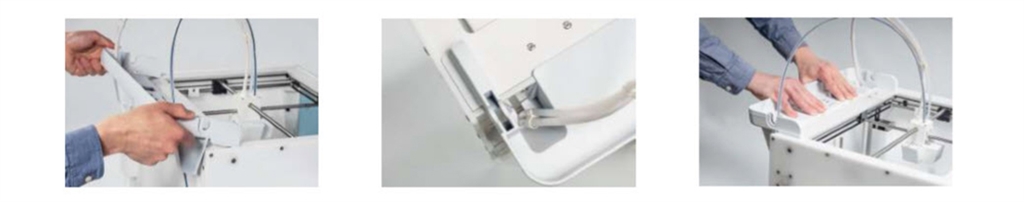3. 將左邊的遠端進料管(Bowden Tube)插入左邊對應的進紙器,右邊的遠端進料管(Bowden Tube)插入右邊對應的進紙器。