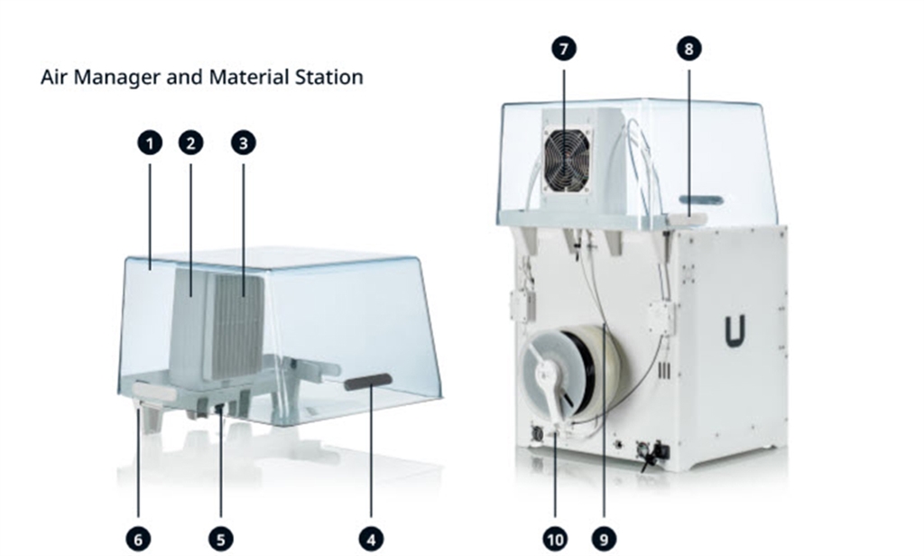 智能進料站(Material Station)建議保存溫度為15-32°C(59 – 90°C),使用時請將設備放置在陰涼處避免陽光直接照射,進料站背面至少要有10公分的空間以確??諝饬魍?。